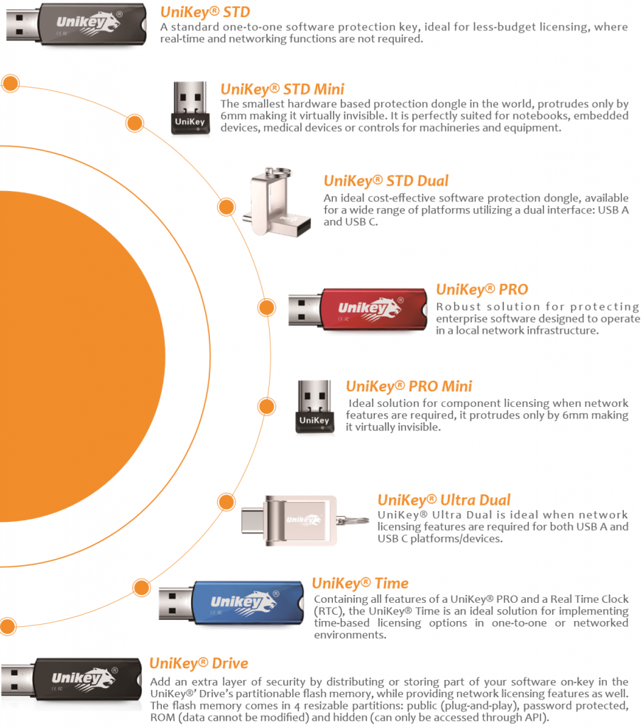 Product UniKey STD UniKey STD Dual UniKey PRO UniKey Time UniKey Drive 2GB UniKey Ultra Dual